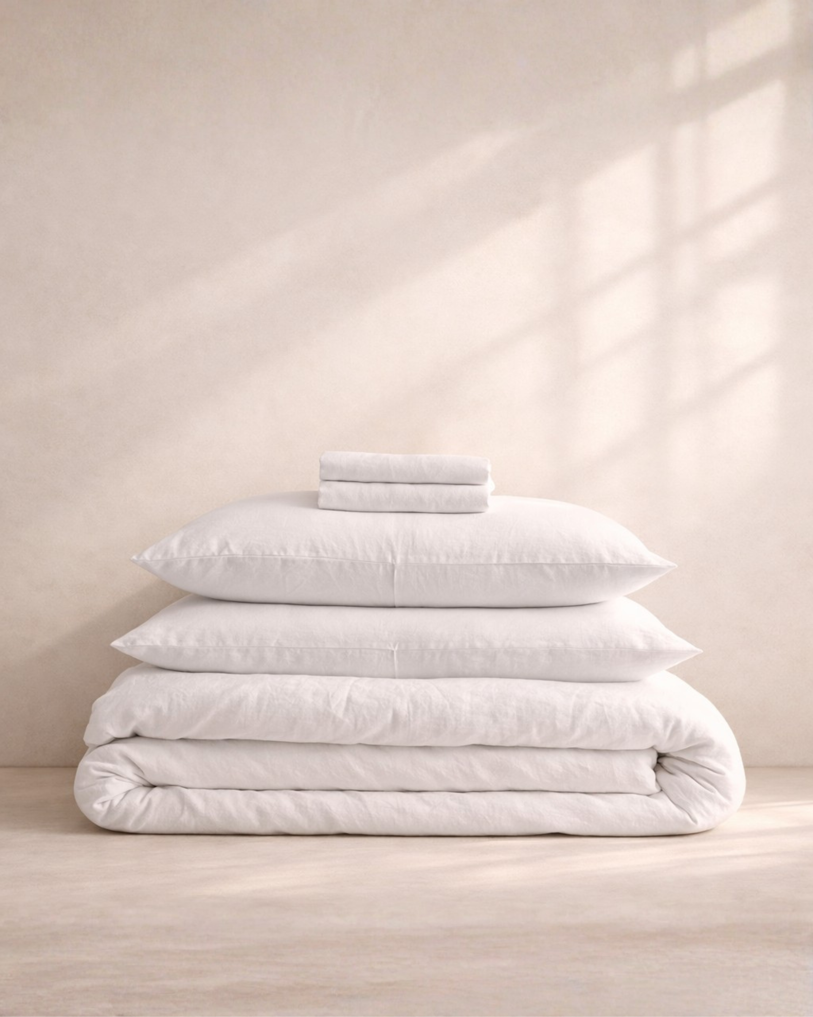 Made from flax fibres and free from synthetic finishes, linen is gentle, airy, and kind to skin.